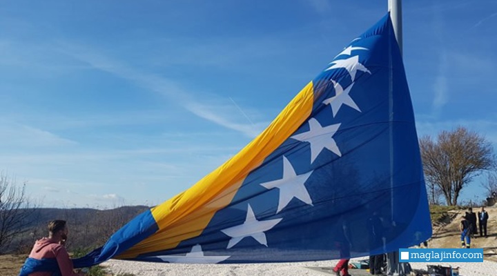 Najveća zastava Bosne i Hercegovine podignuta je danas na brdu Hum iznad Sarajeva.