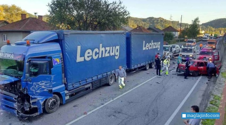 Na magistralnom putu M-17 u mjestu Jelovac kod Maglaja danas oko 17,00 sati dogodila se saobraćajna nezgoda u kojoj su učestvovali kamion i putničko motorno vozilo.