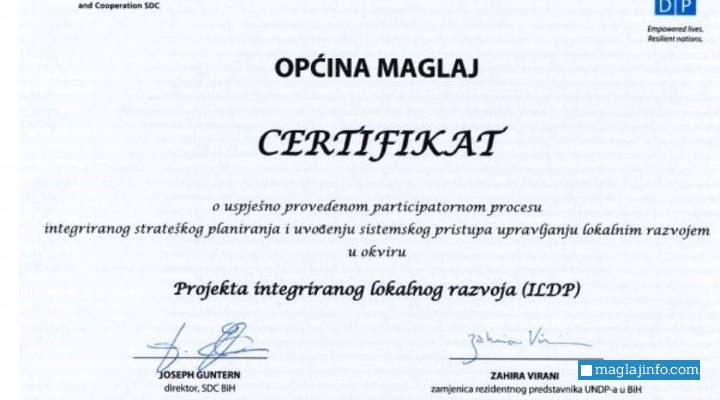 Mehmed Mustabašić u ime Općine Maglaj primio certifikat za ILDP