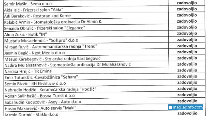 Općina Maglaj objavila listu privrednih subjekata koji su zadovoljili uslove projekta ''BOS217''