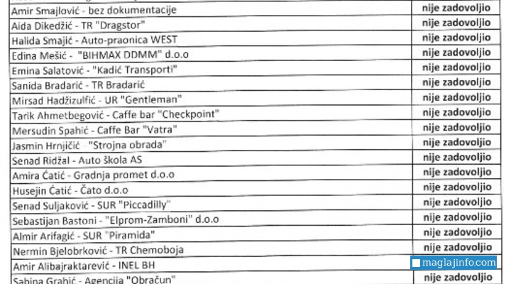 Komisija njemačke organizacije Aktion Deutschland Hilft "HELP" u sklopu projekta "BOS217" Podrška lokalnom ekonomskom oporavku poslije poplava u Maglaju i Doboju, Općini Maglaj dostavila je rezultate prve selekcije - spisak poplavljenih privrednih subjekata koji su zadovoljili uslove Javnog poziva.