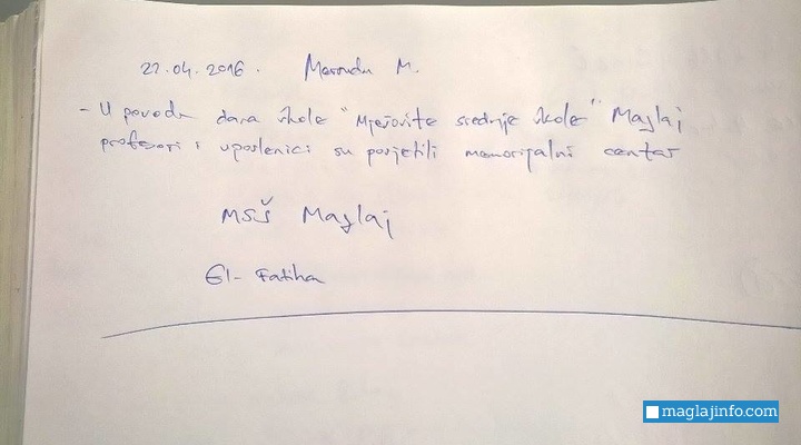 Predvođeni direktorom MSŠ Maglaj Erminom Tankovićem profesori i ostali uposlenici danas su posjetili Memorijalni centar u Potočarima te Spomen sobu ubijenim.
